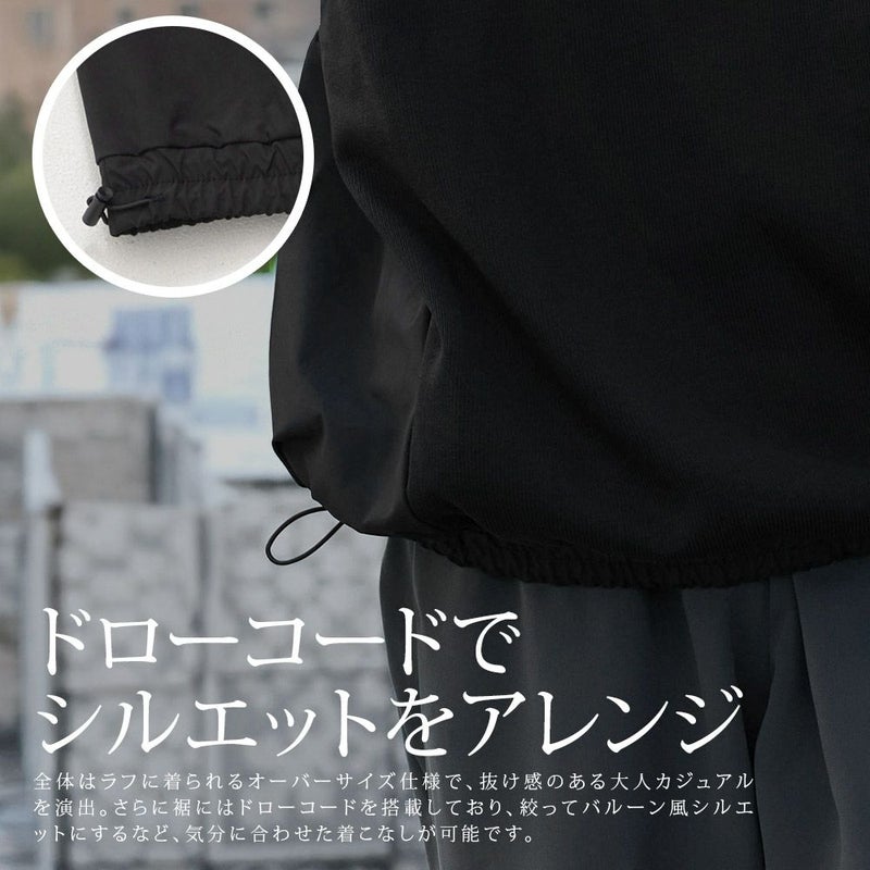 さらに裾にはドローコードを搭載しており、絞ってバルーン風シルエットにするなど、気分に合わせた着こなしが可能です。