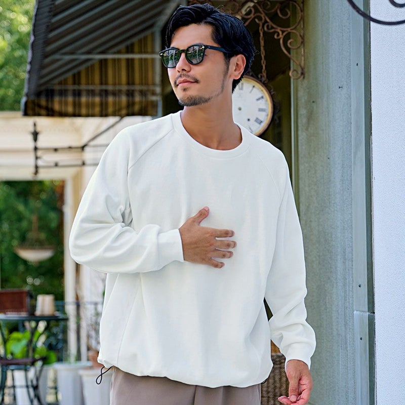 全体はラフに着られるオーバーサイズ仕様で、抜け感のある大人カジュアルを演出。