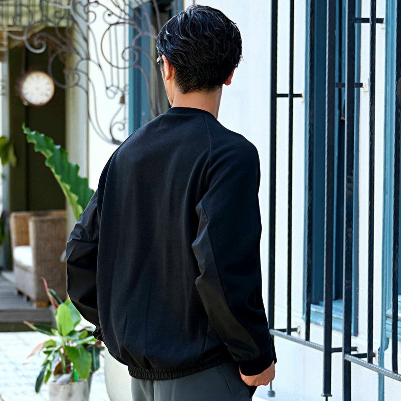 異なる素材のコントラストがスタイリッシュな印象を与え、シンプルながらも一線を画す着こなしを叶えます。