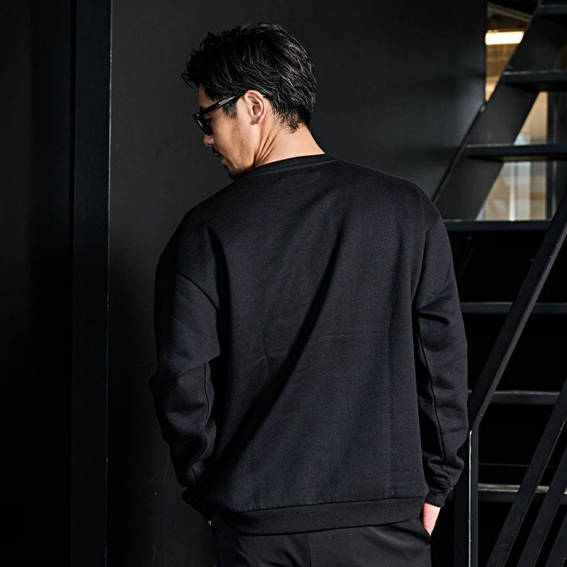 裏起毛を施した柔らかなスウェット生地は、ストレッチが効いてストレスのない着心地。