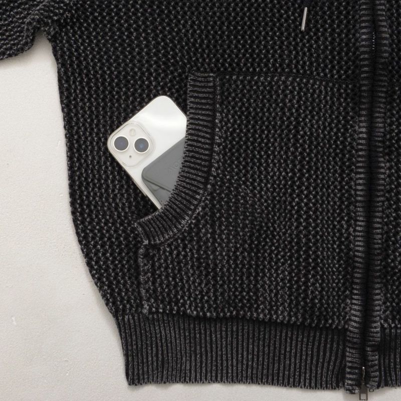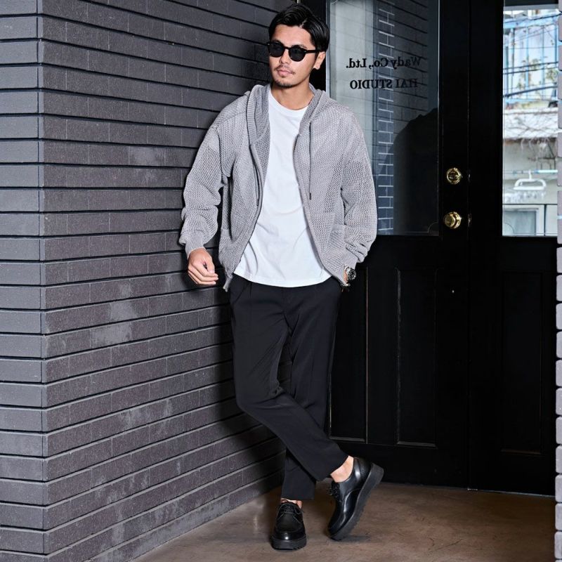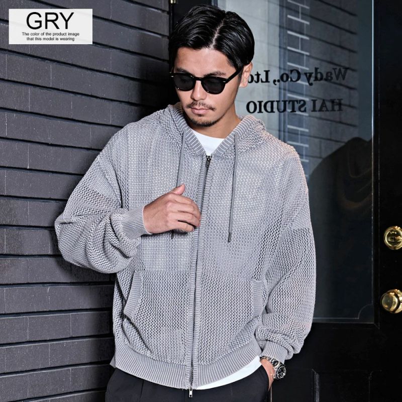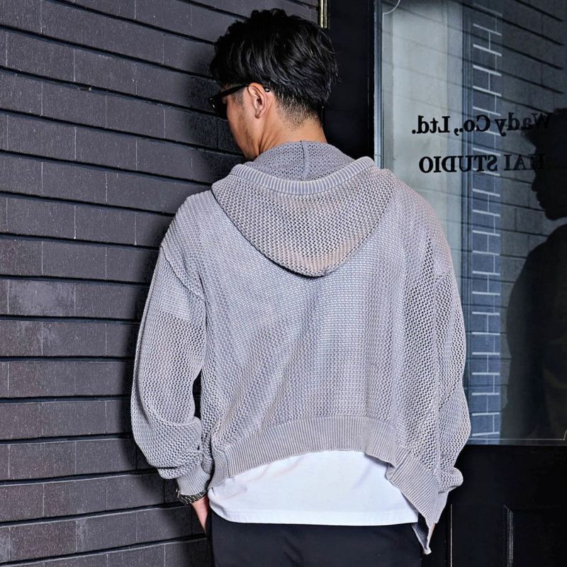 メッシュ編みを採用したニットZIPパーカー。