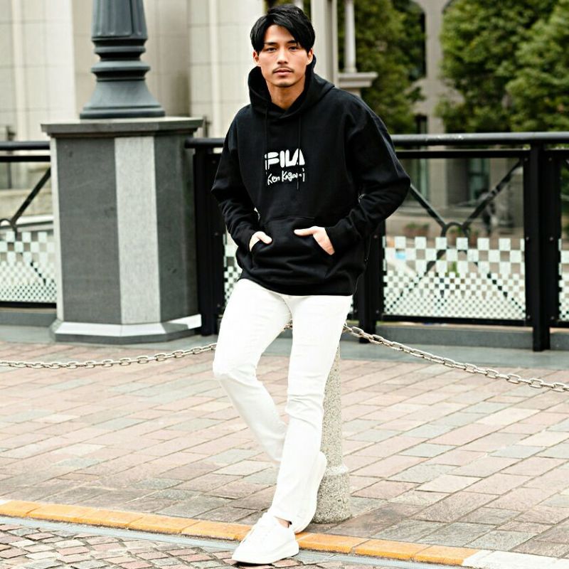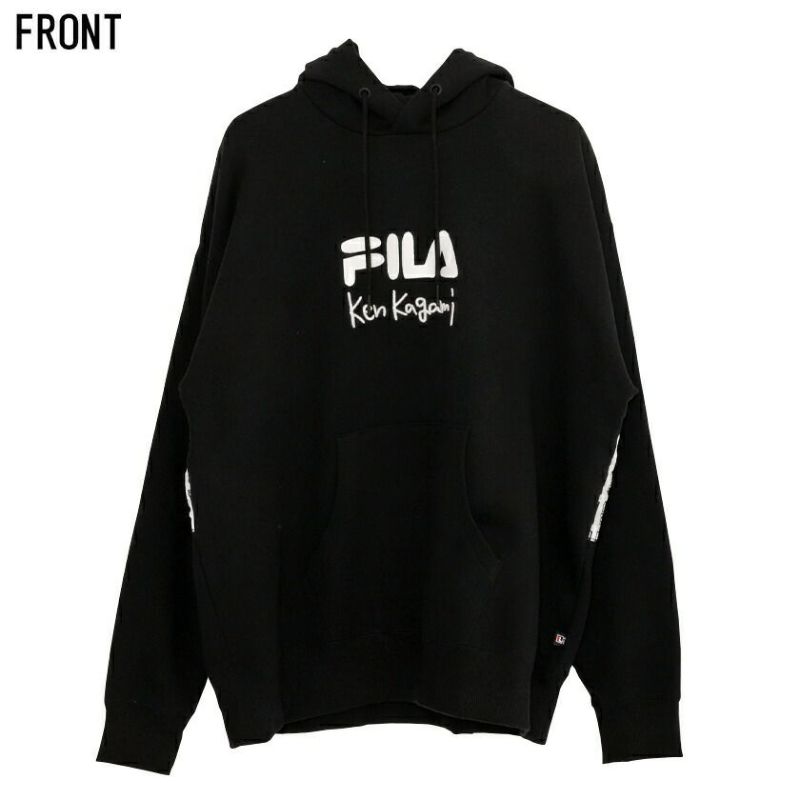 フロントにはFILAオリジナルロゴプリントとken kagamiの刺繍をデザイン。