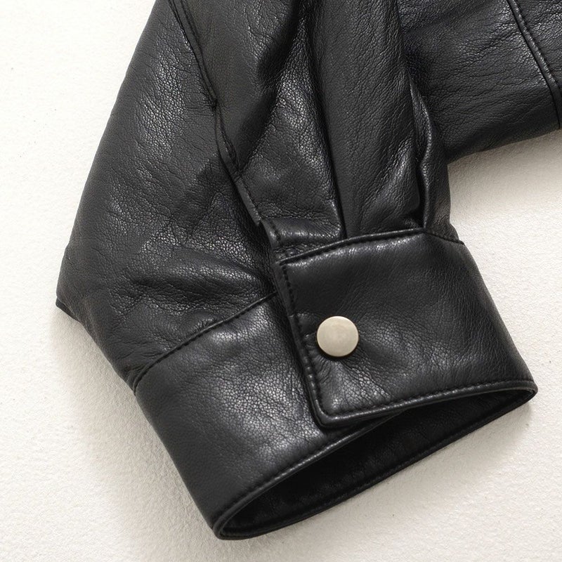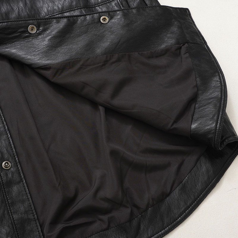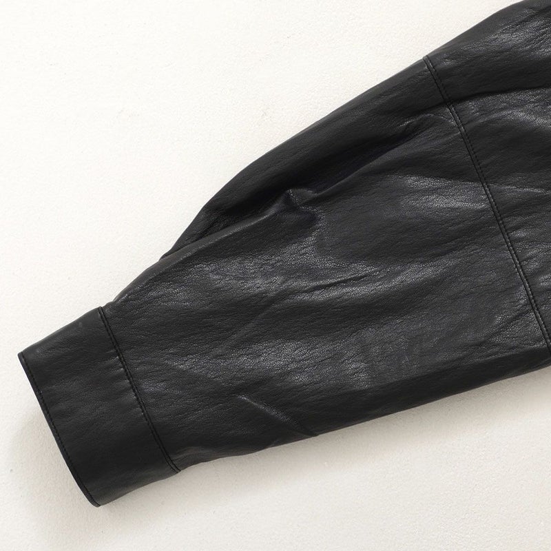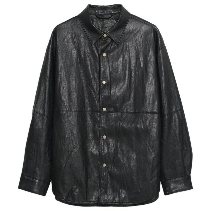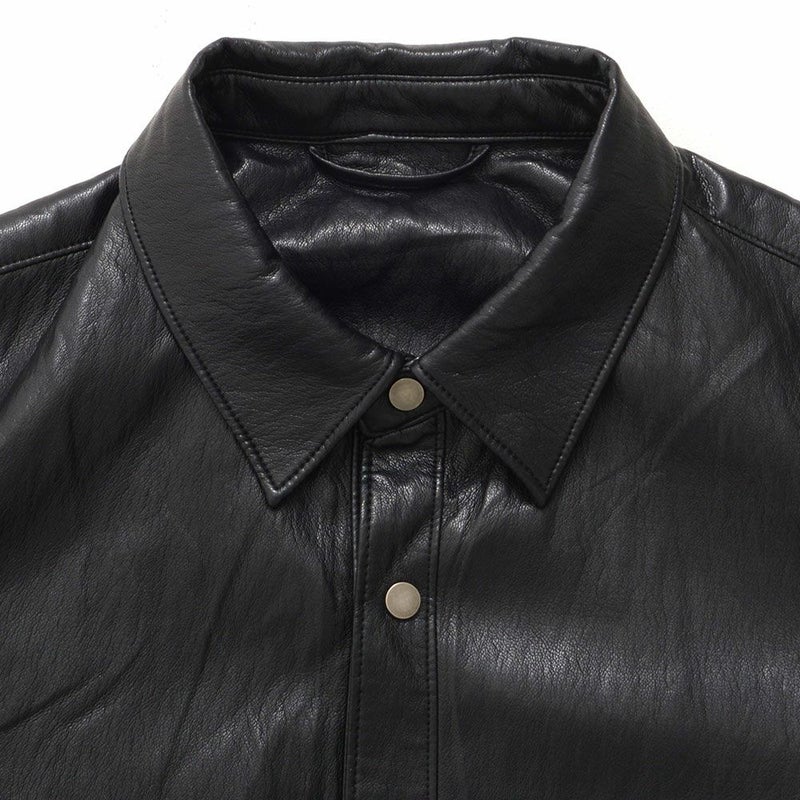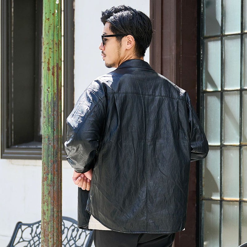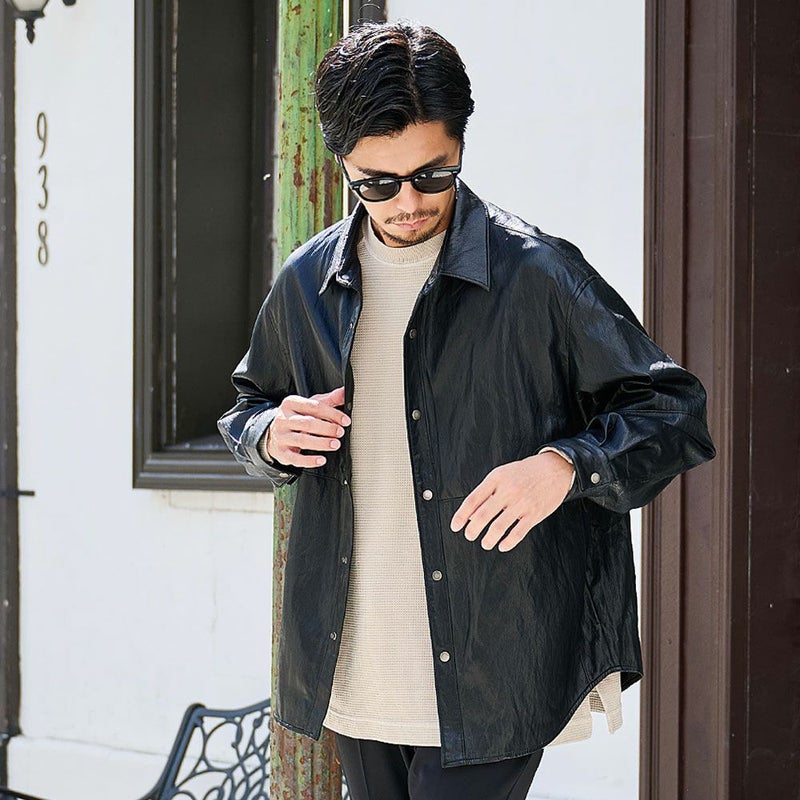 程よい光沢と深みのある質感が魅力のレザーシャツ。