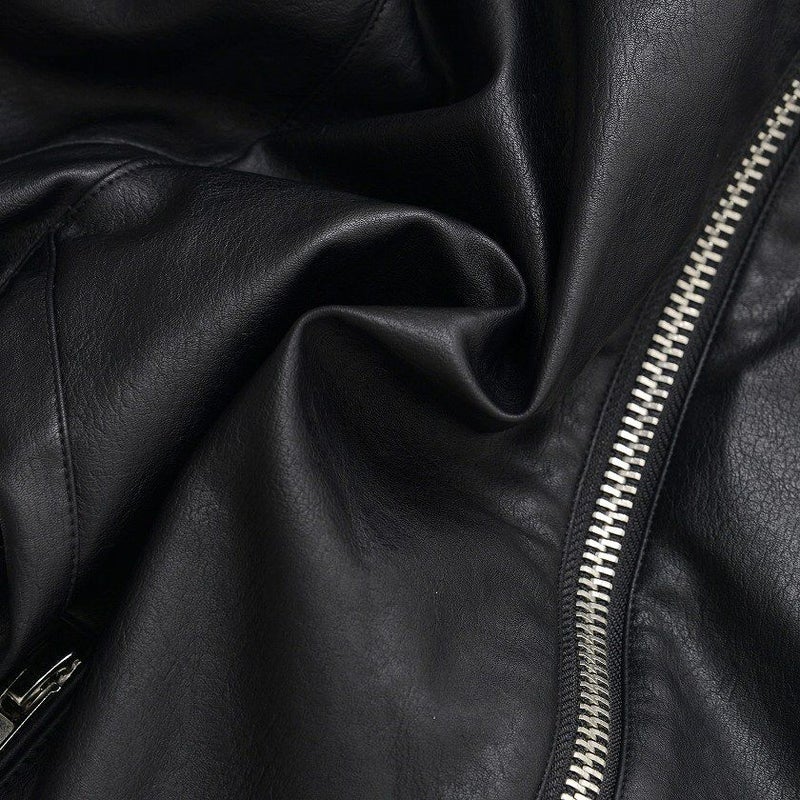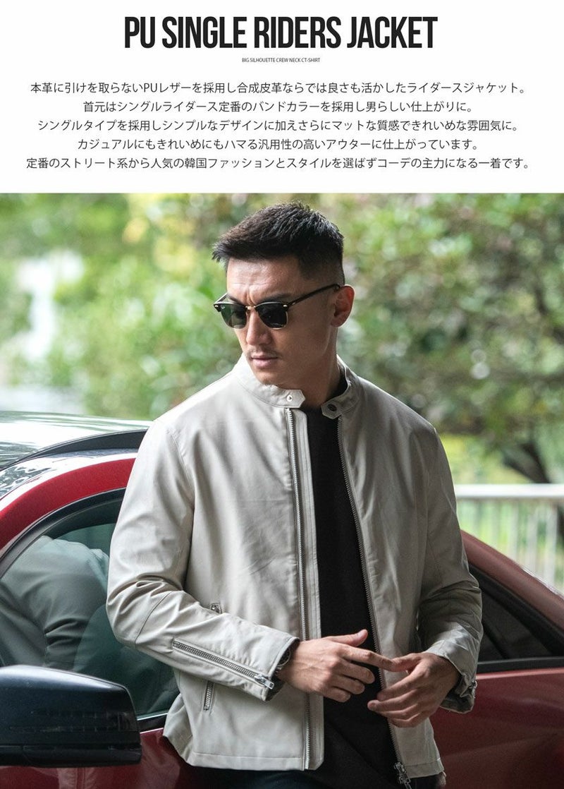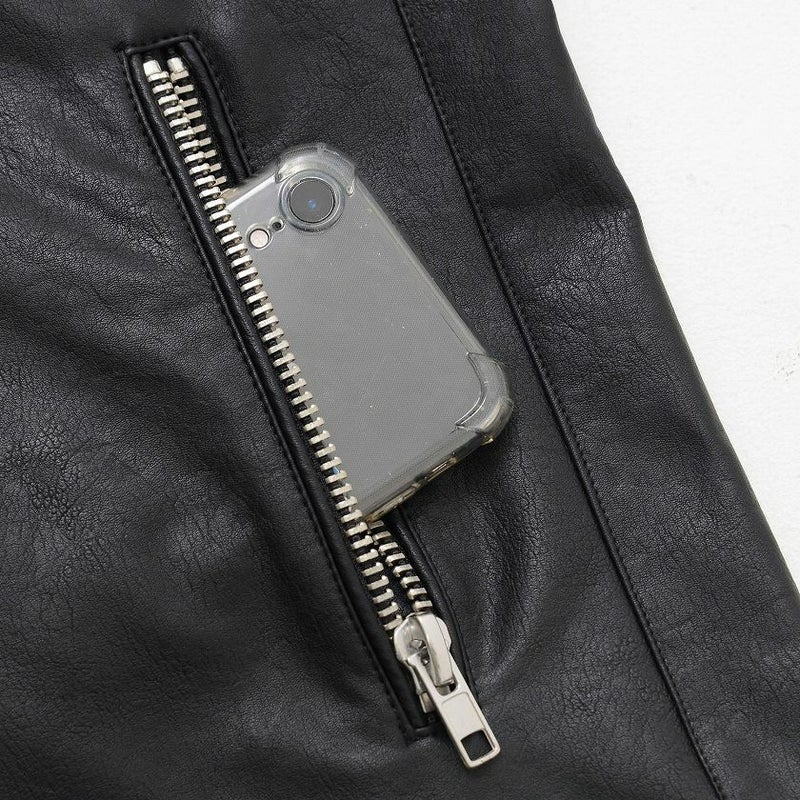 本革に引けを取らないPUレザーを採用し、軽く動きやすい合成皮革ならでは良さも活かしたライダースジャケット。