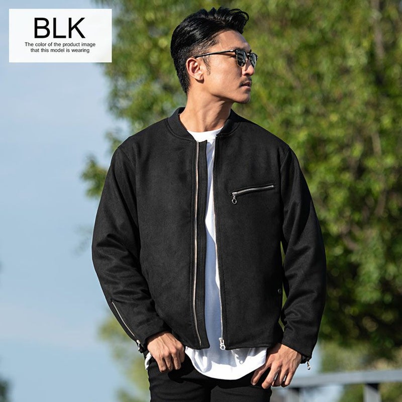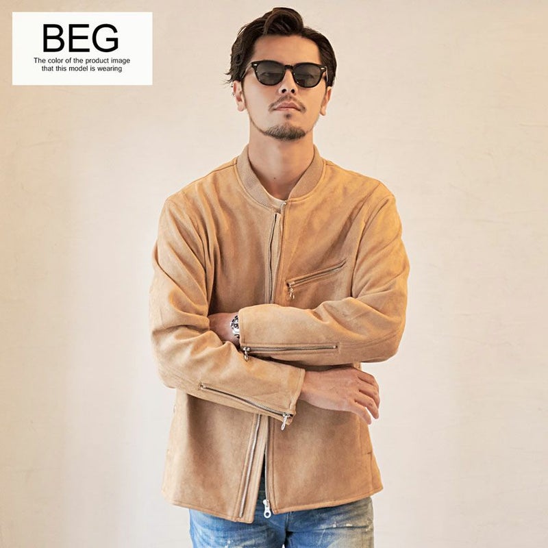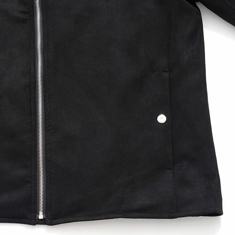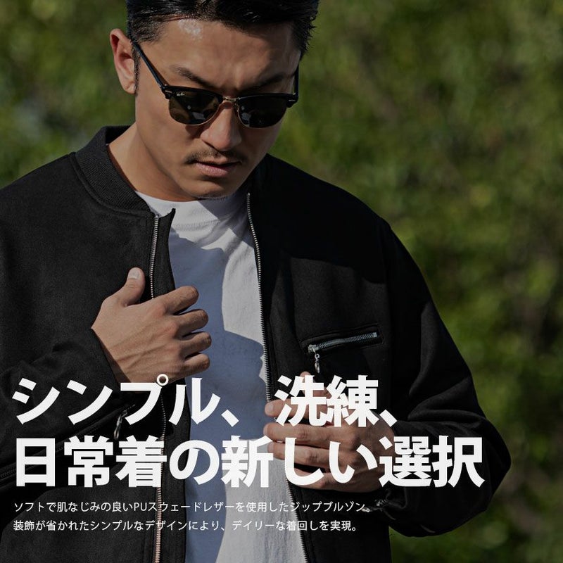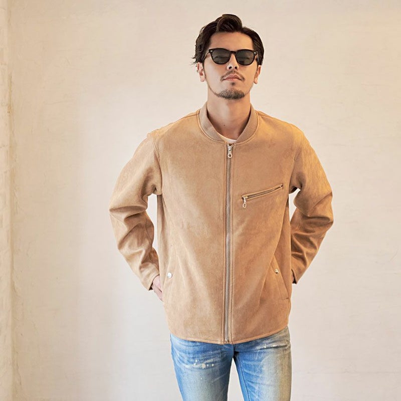 ソフトで肌なじみの良いPUスウェードレザーを使用したジップブルゾン。