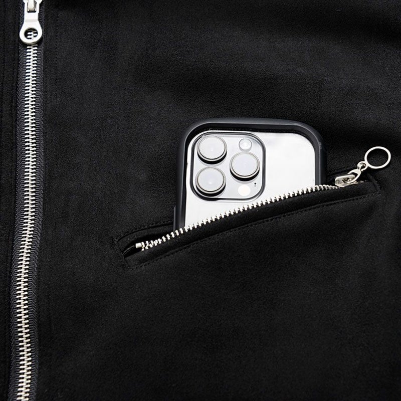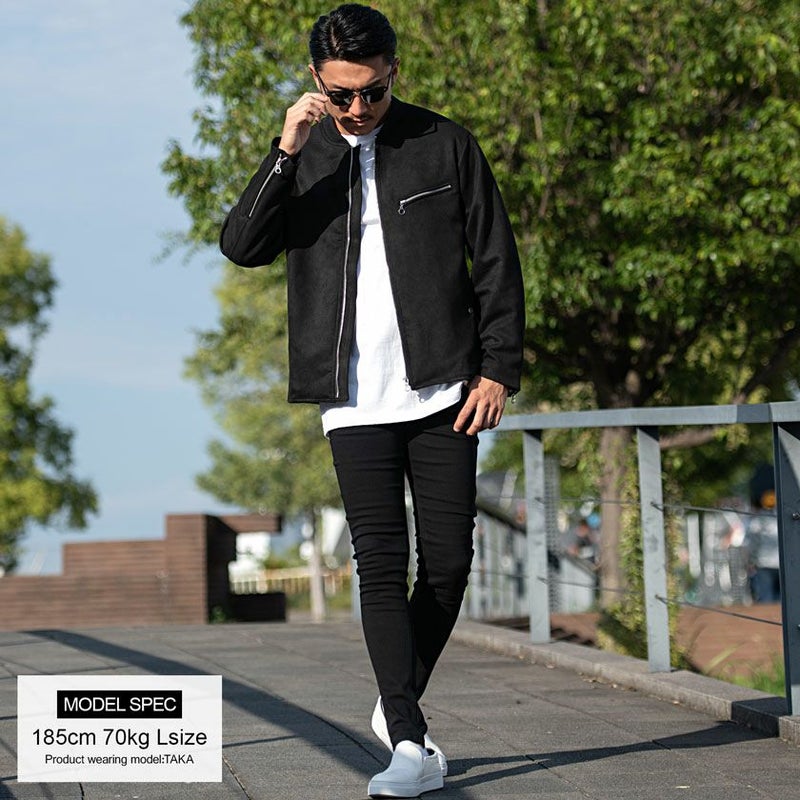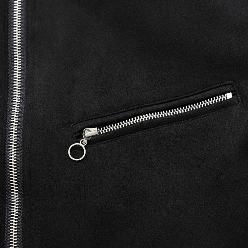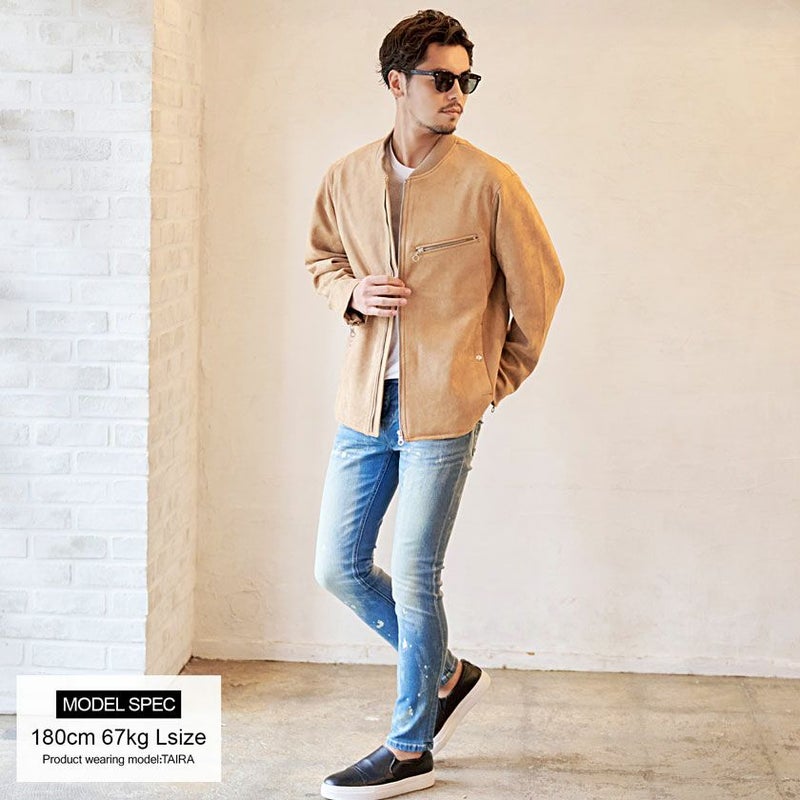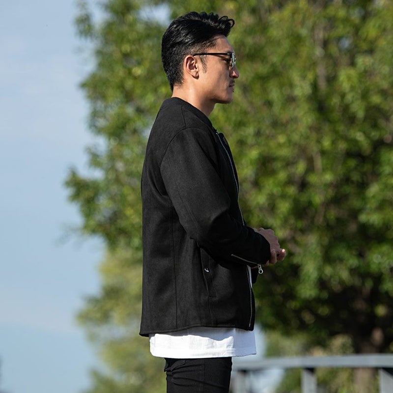 ソフトで肌なじみの良いPUスウェードレザーを使用したジップブルゾン。