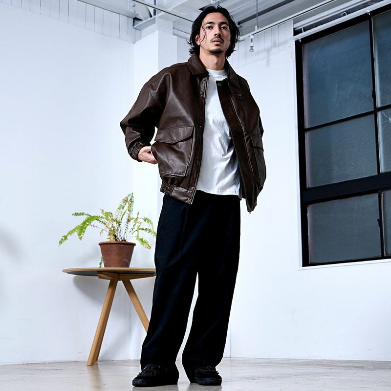 A-2タイプのジャケットで男らしさと存在感を兼ね備えたデザインに。