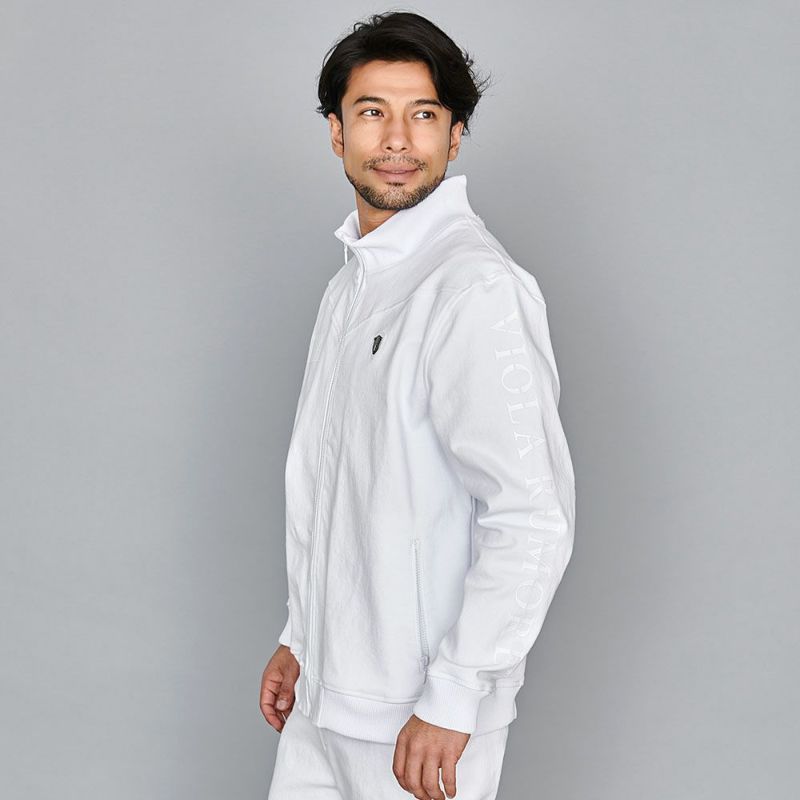 肩口に切り替えを施し、右胸に「ITA」のロゴ、左胸にはオリジナルエンブレムが高級感を演出。