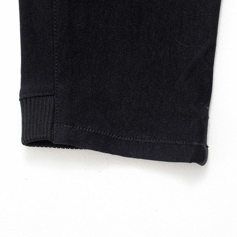 足元はリブ仕様で足元のもたつきがないため動きやすく、コーデに程良い抜け感を演出。