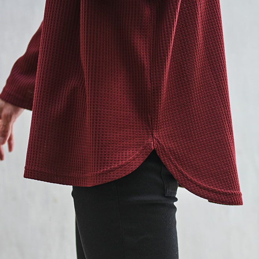 他の画像を見る ワッフル状の凹凸が特徴のサーマル素材を使用。生地の凹凸が空気を溜め込み、熱を逃がしにくいため、軽やかでありながら暖かい着心地を実現します。 CavariA(キャバリア)サーマルロングTEE/全3色 販売価格 ¥ 6,490 税込 カートに入れる お気に入りに登録する