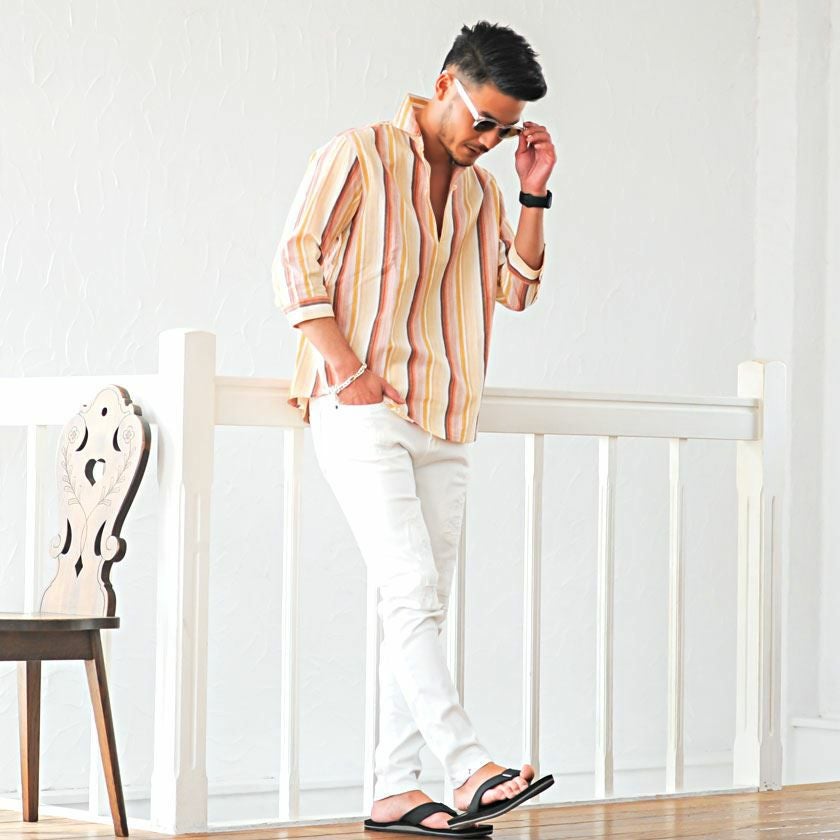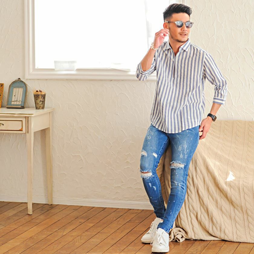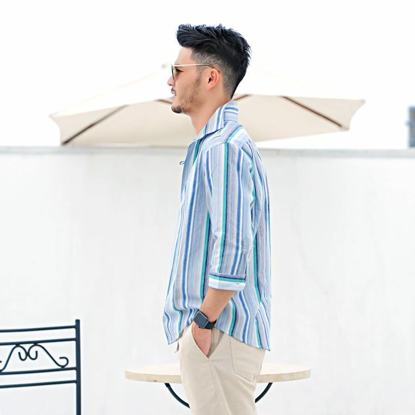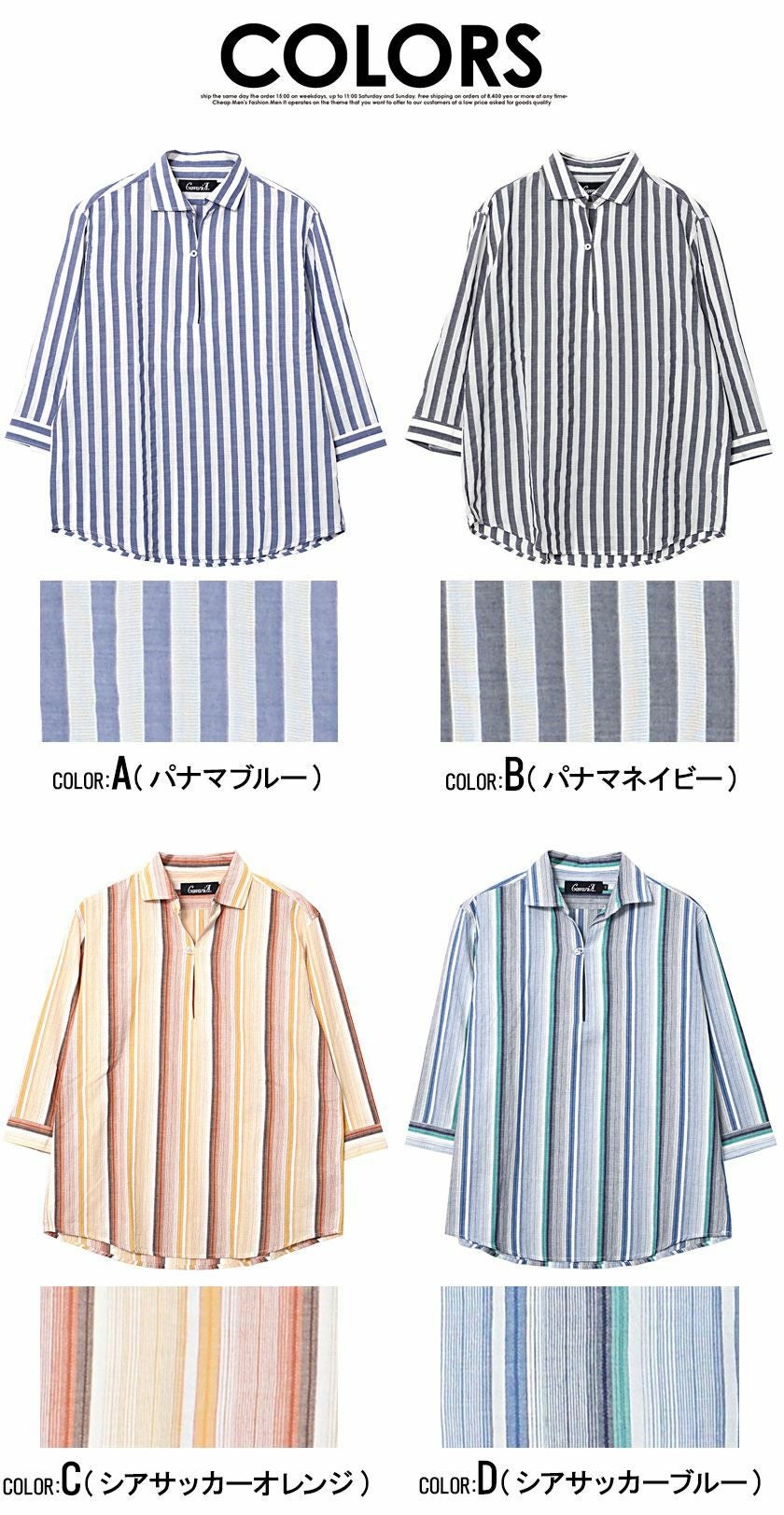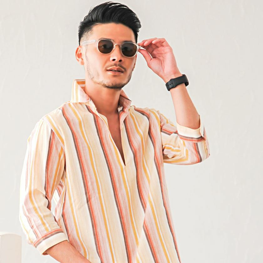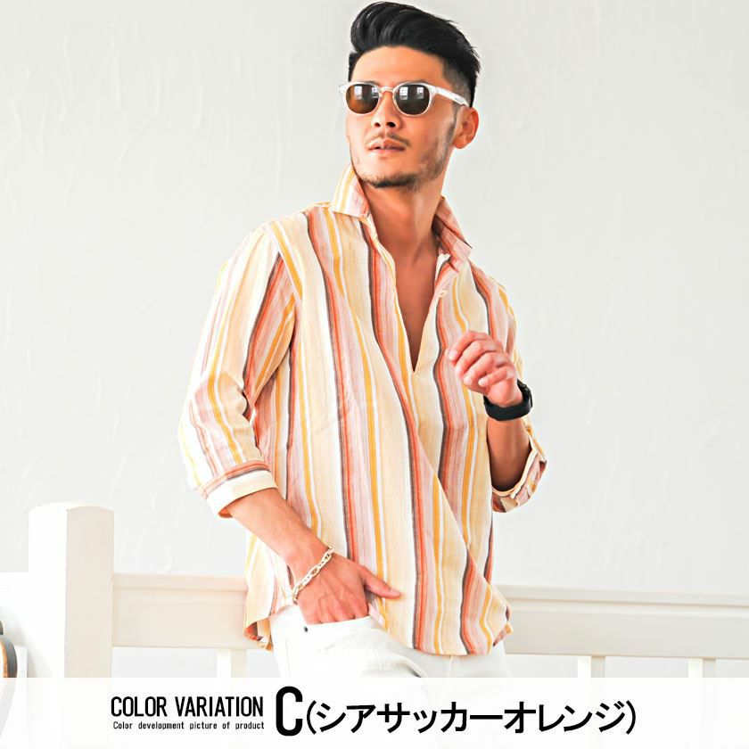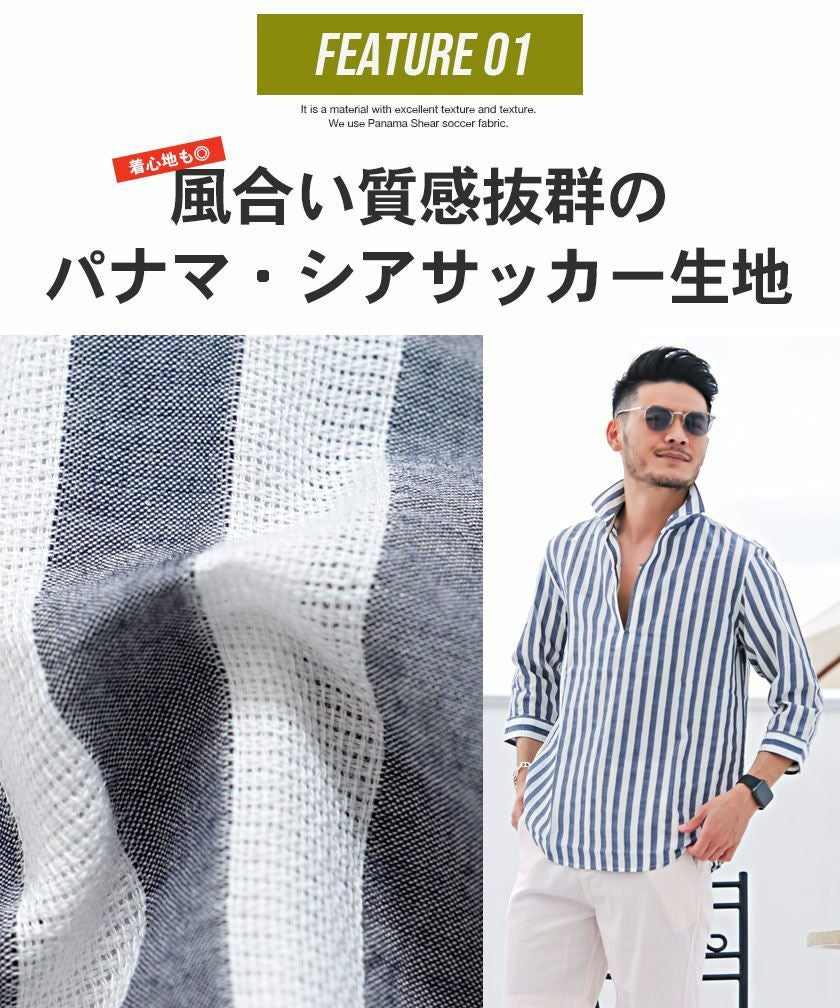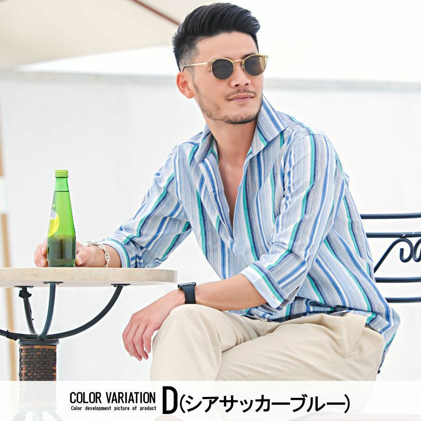 他の画像を見る シンプルで清潔感のあるシャツ。ビジネスにもカジュアルにも使える万能アイテム。 CavariA(キャバリア)ストライプシアサッカー七分袖パナマカプリシャツ/全4色 販売価格 ¥ 5,940 税込 カートに入れる お気に入りに登録する
