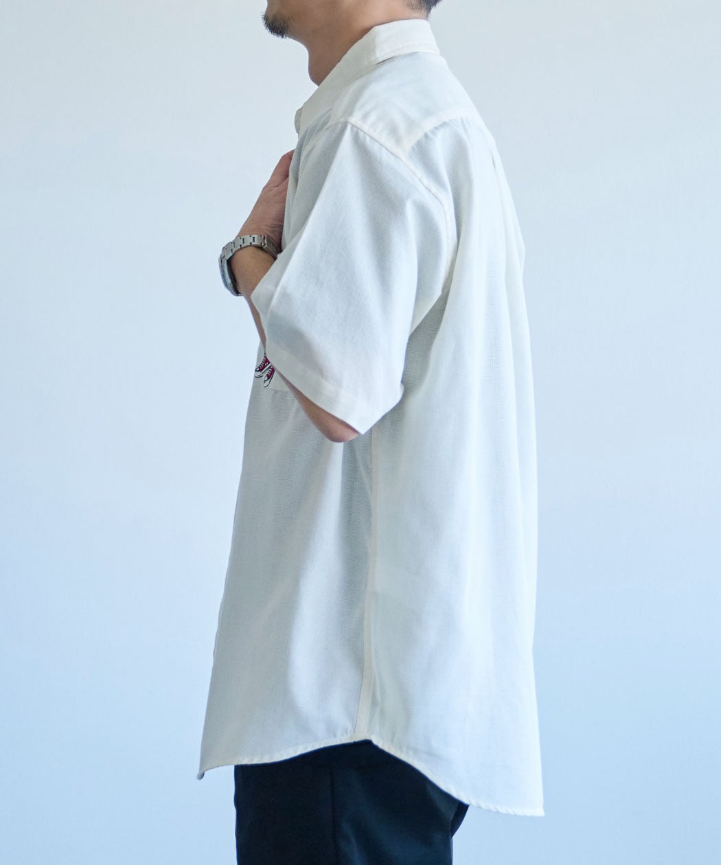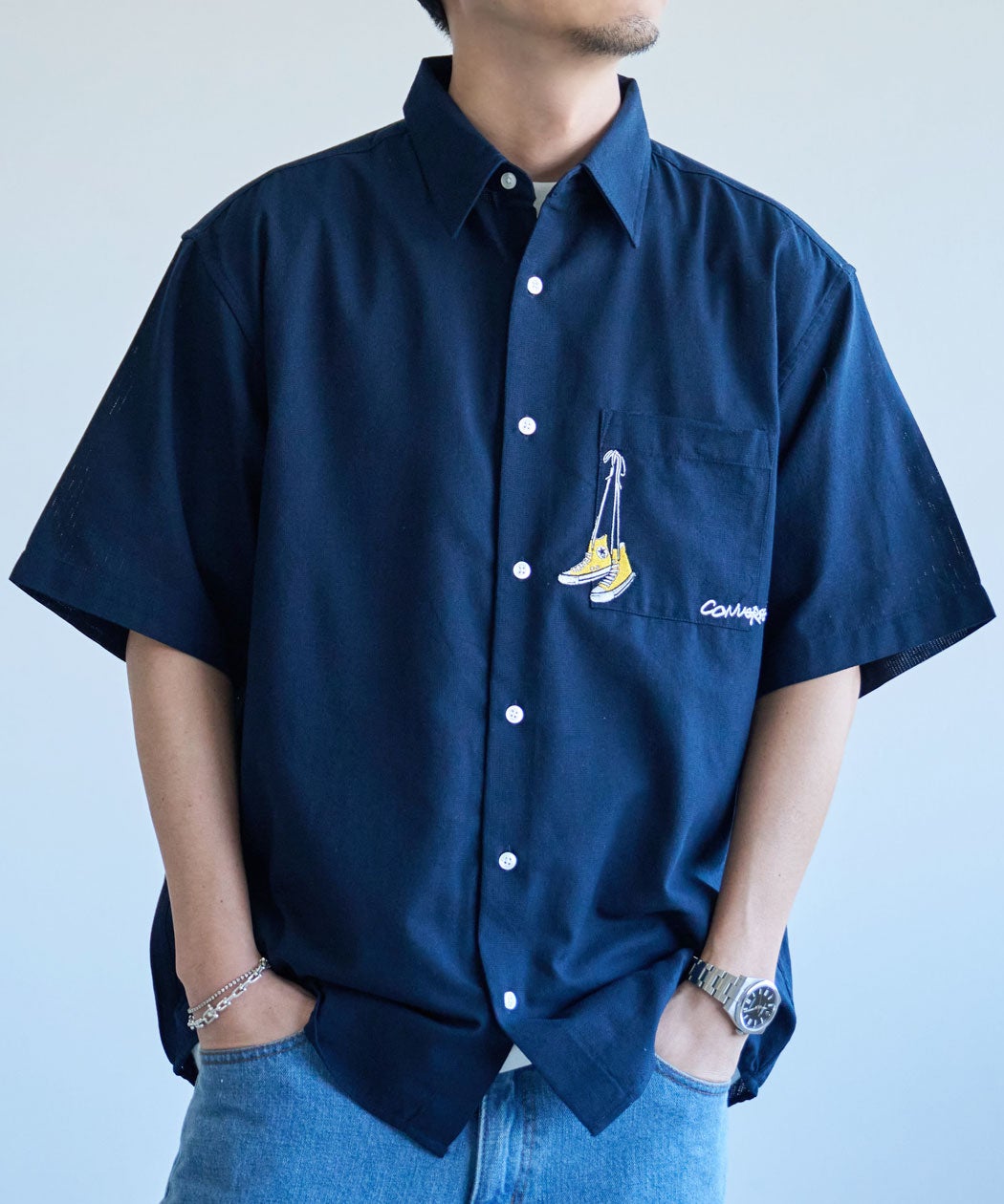 他の画像を見る 胸ポケット部分に施されたスニーカーモチーフの刺繍が目を惹く遊び心のあるデザインが特徴の半袖シャツ。表面に凹凸感のある織り生地で軽やかな着心地と爽やかな風合いを楽しめます。 CONVERSE【コンバース】TCパナマ織りポケットまたぎ刺繍半袖シャツ/全3色 販売価格 ¥ 3,278 税込 カートに入れる お気に入りに登録する