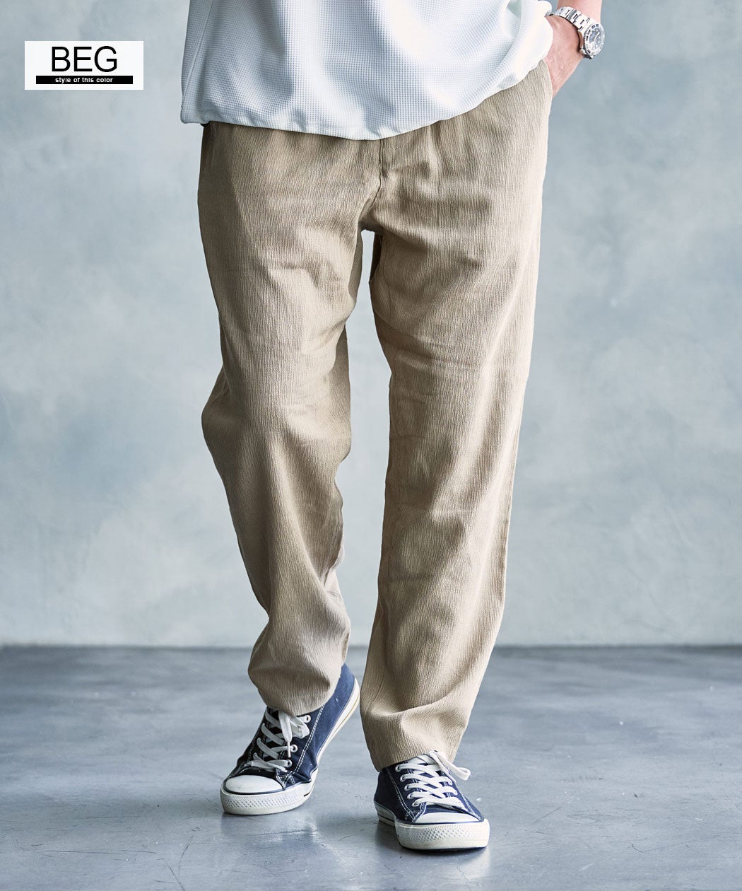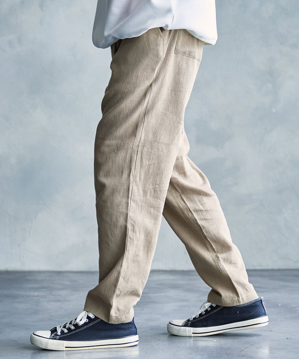 他の画像を見る シンプルながらも表情のある生地で、季節感のあるスタイルを演出してくれる一本。肌離れが良く、通気性にも優れているため、暑い季節でもさらっと快適に着用できます。 Bitter select【ビターセレクト】NATURAL STORY 楊柳イージーパンツ/全4色 販売価格 ¥ 4,290 税込 カートに入れる お気に入りに登録する