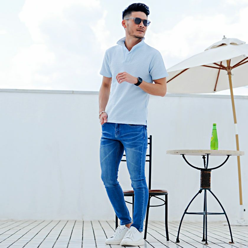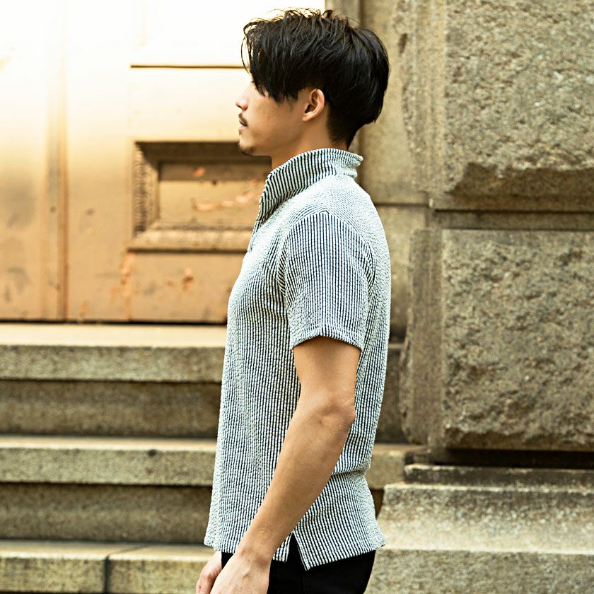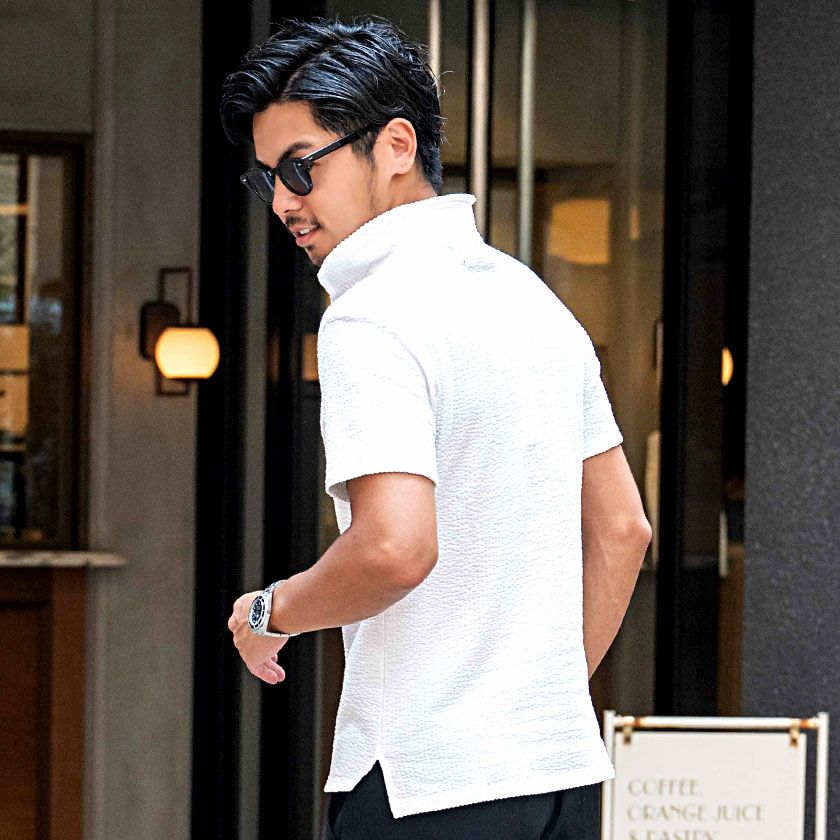 他の画像を見る 通気性に優れたシアサッカー素材を採用。清涼感がありこれからの時期に最適な一枚です。美しく立体的なロールが魅力のイタリアンカラーは、上品で色気のある襟元を演出。 CavariA(キャバリア)襟ワイヤー入りイタリアンカラー半袖シアサッカーポロシャツ/全7色 販売価格 ¥ 3,480 税込 カートに入れる お気に入りに登録する