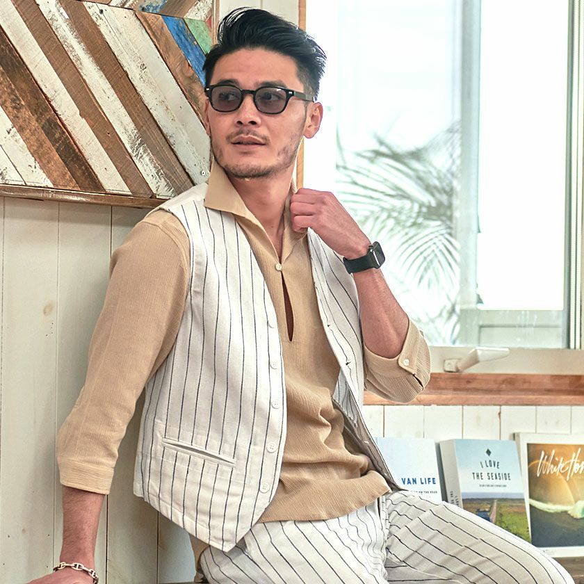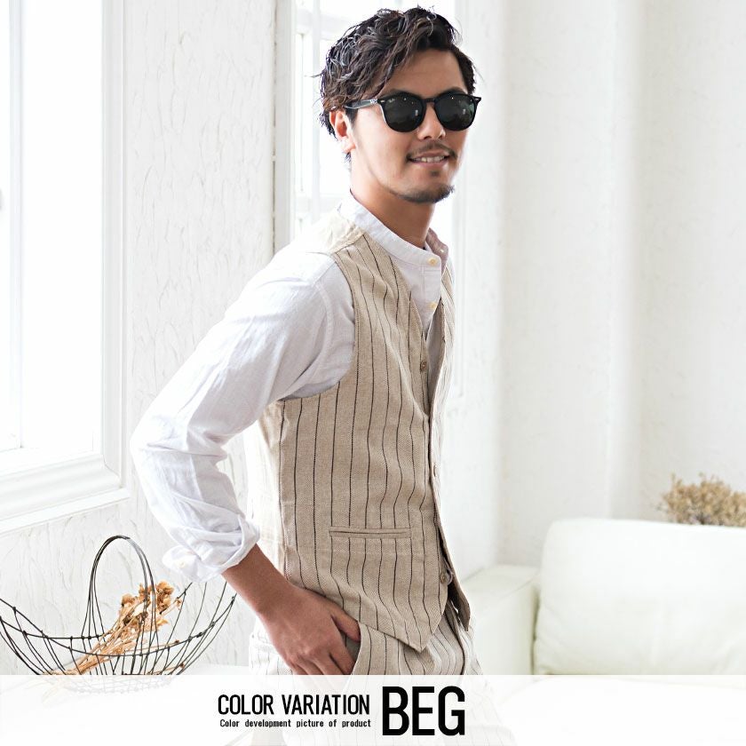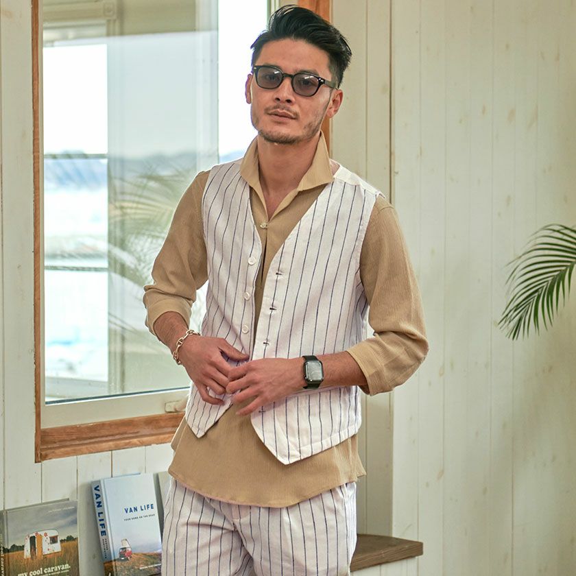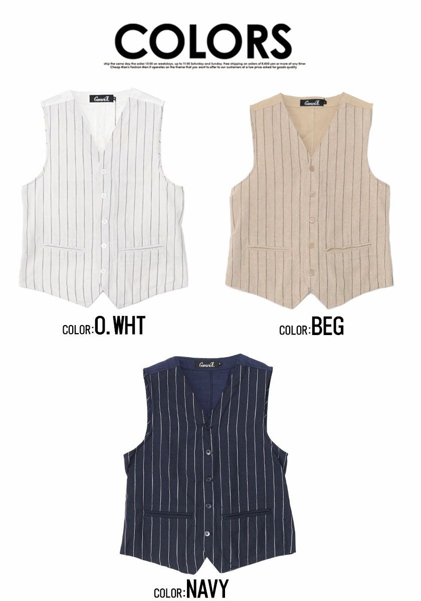 他の画像を見る ジレ ベスト メンズ ストライプ 綿麻 ストライプ柄 ボタンベスト コットンリネン キレイめ レイヤード 爽やか 通気性 カジュアル ホワイト ベージュ ネイビー CavariA(キャバリア)綿麻ストライプ柄ボタンベスト/全3色 販売価格 ¥ 4,290 税込 在庫切れ カートに入れる お気に入りに登録する